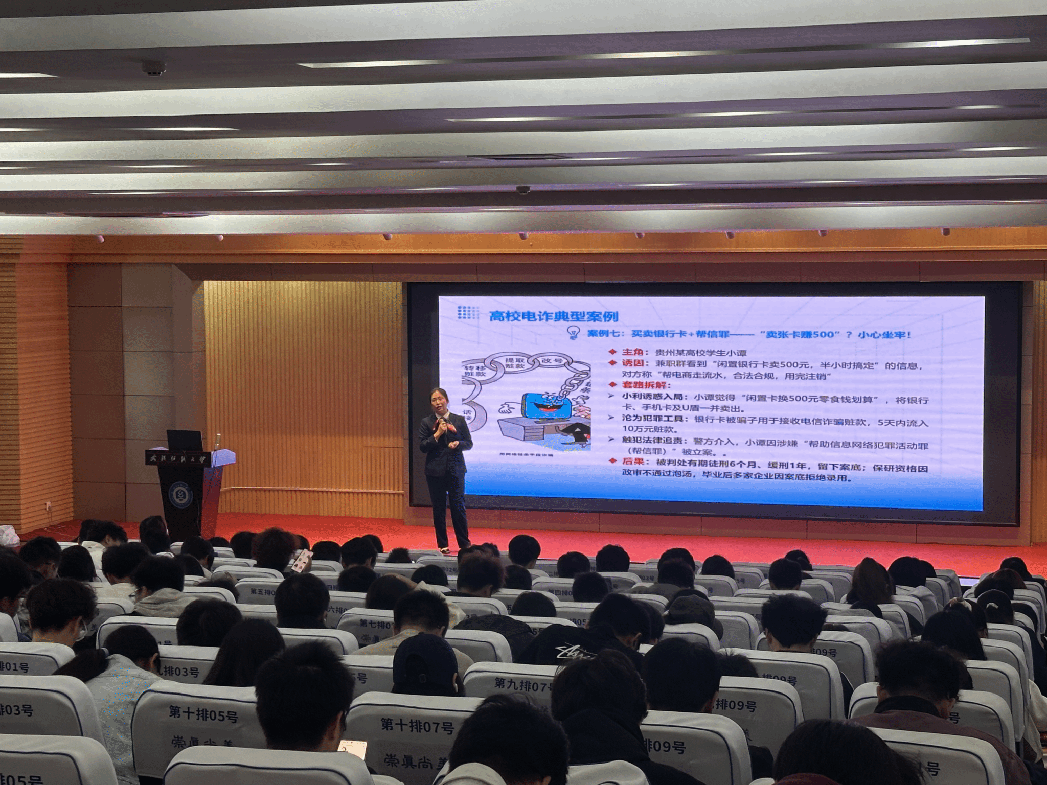 针对新生社会经验不足的特点,讲座提炼了通俗易懂的防诈核心技巧。