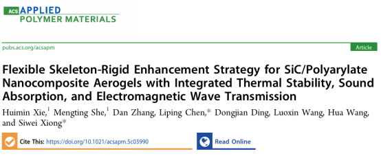 王桦、王罗新教授团队本科生谢惠敏在材料科学领域权威期刊《ACS Applied Polymer Materials》(中科院二区)以第一作者发表了题为“Flexible Skeleton-Rigid Enhancement Strategy for SiC/Polyarylate Nanocomposite Aerogels with Integrated Thermal Stability, Sound Absorption, and Electromagnetic Wave Transmission ”的学术论文。四虎