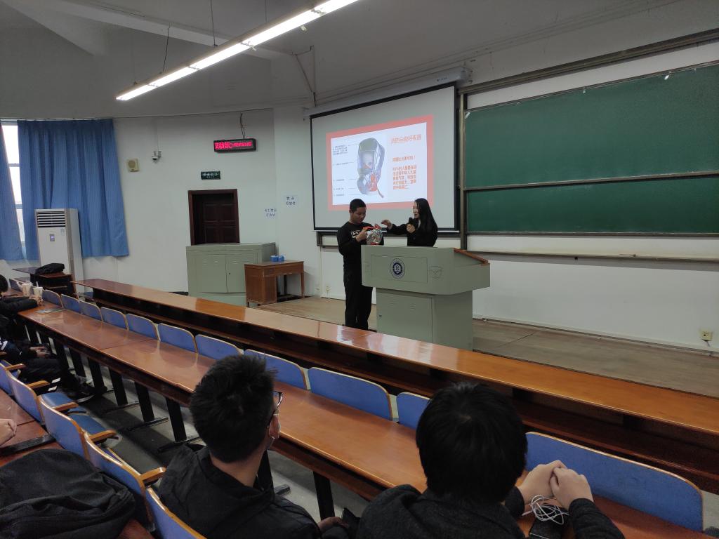 授课老师首先播放了一段火灾事故的视频,展示了火灾事故发生造成的重大危害;接着,从消防基本知识、发生火灾时怎么办、消防器材使用方法、校园火灾预防措施等四个方面展开。授课老师重点解释了四虎