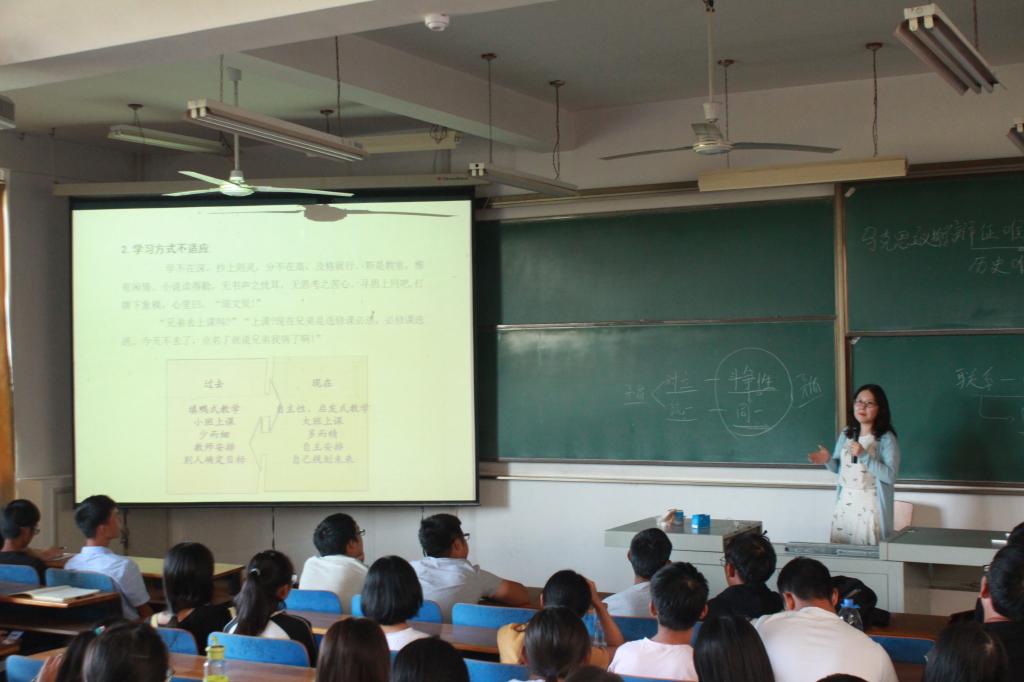 的教务处网站。黄老师则重点介绍了转专业,休学,退学,重修的问题、学分的构成,选课的问题、大学生管理规定、本科生考勤及请假管理方法、每周班会及晚点名工作、大学生综合测评积分实施办法、本专科学生国家助学金评选管理办法、本专科家庭经济困难学生认定工作实施办法这八个方面,使新生对大学的规章制度有了一个全面的认识。