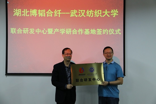 与博韬合纤签订了合作协议,刘在洲书记为联合研发中心和产学研合作基地授牌。