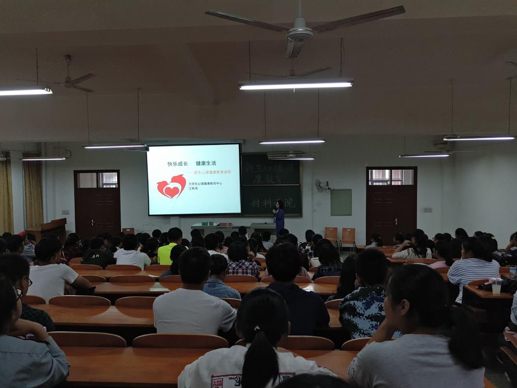 9月29日上午,学院邀请校心理健康教育中心江秋玮老师为新生开展了题为《快乐成长 健康生活》的心理健康教育讲座,给在座的新生们普及了必要的心理学、心理卫生学知识,引导同学们以一颗平常心面对自己、面对新的集体和校园环境。