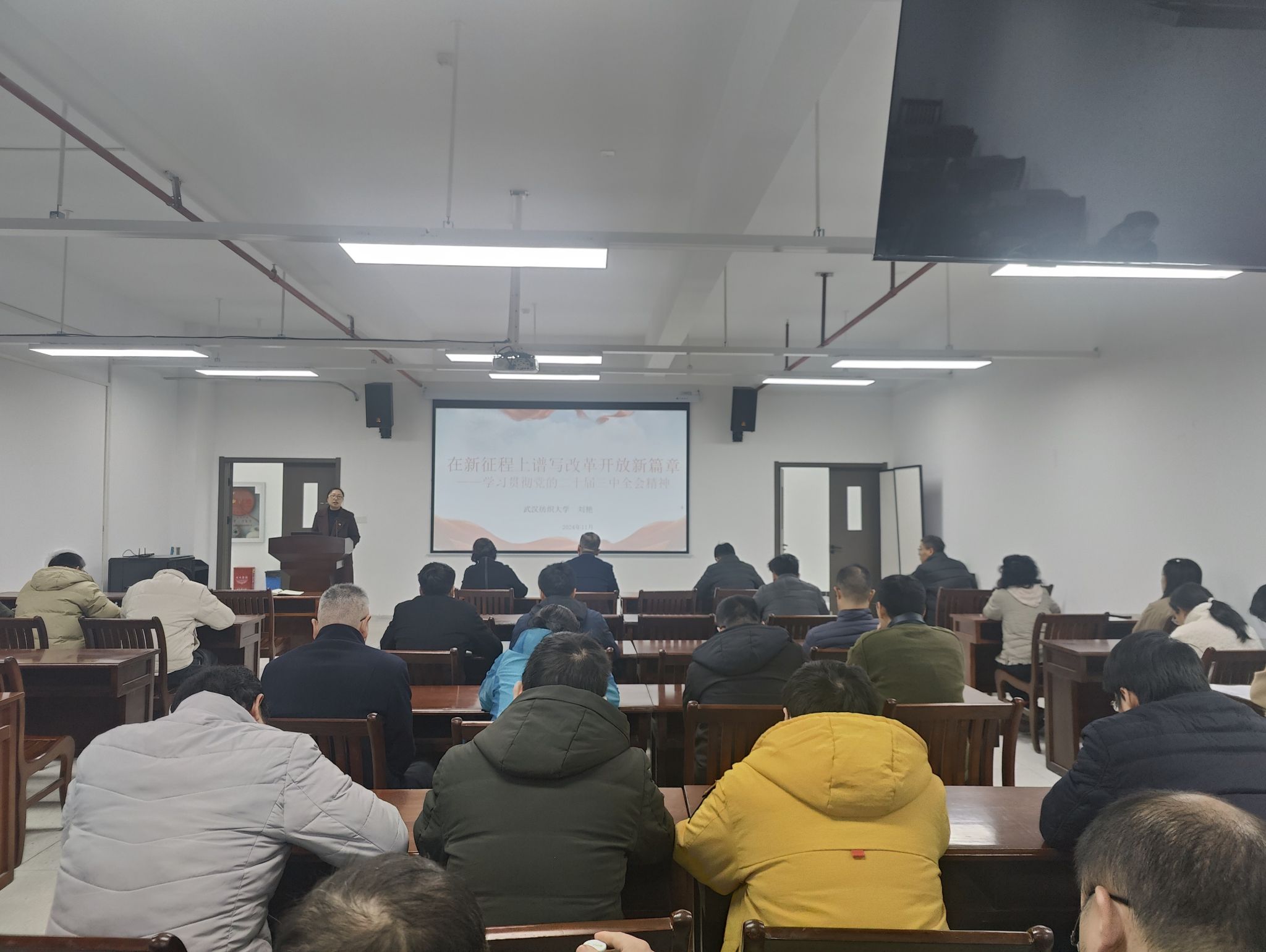 党的二十届三中全会宣讲团成员、马克思主义学院副院长刘艳教授进行专题宣讲,院领导班子及全体教职工参加会议,学院党委书记陈桂枝主持。