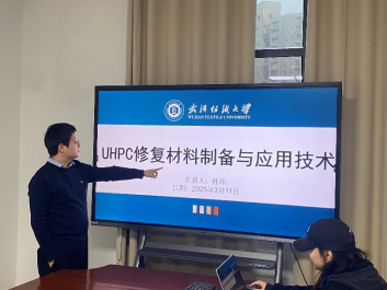 支持下,赴武汉理工大学硅酸盐建筑材料国家重点实验室开展了为期一年的访学。杜老师介绍了访学项目情况,以及研究与开发领域的工作进展,并向在场师生做了“UHPC修复材料制备与应用技术”的学术交流报告。