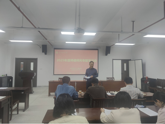 统一部署,结合学院实际,于 317 会议室组织开展了 2025 年度师德师风建设月专题活动。此次活动由学院党委书记王罗新主持,全体教师积极参与,为学院教育教学高质量发展注入强大动力。