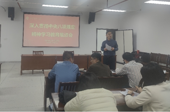 在总结环节,王罗新肯定学院前期落实中央八项规定精神的工作成效,并对后续工作提出三点具体要求:一要持之以恒深化理论学习,提升政治站位。将学习中央八项规定精神作为一项长期的政治任务,深刻领会其核心要义,不断强化党性修养,在教学、科研、管理工作中时刻践行。二要强化责任担当,狠抓工作落实。每个人都要切实肩负起责任,做好自我管理,将中央八项规定精神细化到日常工作的各方面,确保工作规范、有序推进。三要建立长效机制,巩固学习成果。学院以此次学习为新的起点,进一步健全相关制度,构建常态化、长效化的作风建设机制,推动学院在学科建设、教育教学改革、师资队伍建设等重点工作上取得新突破。