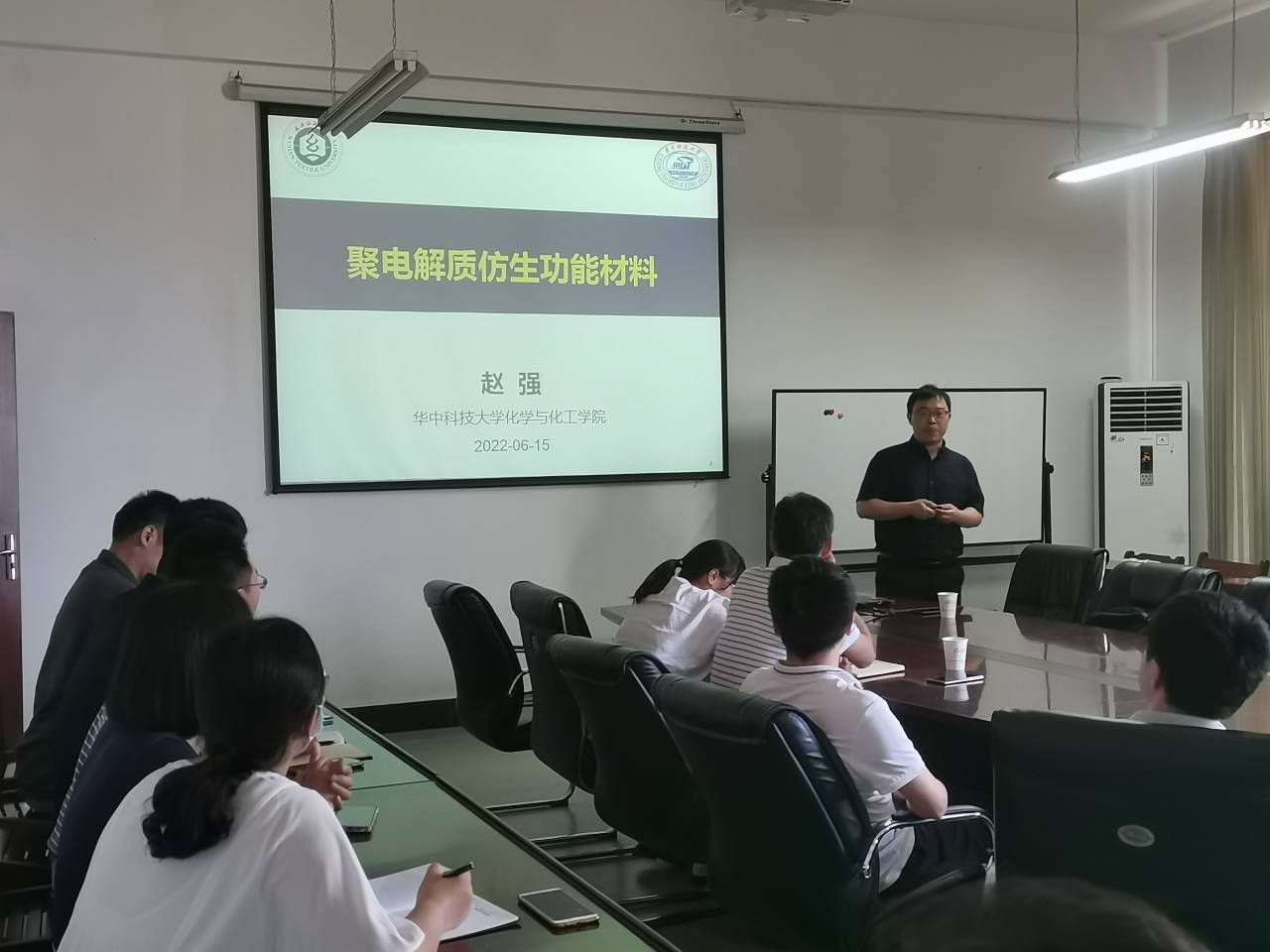 于6月15日下午,邀请华中科技大学化学与化工学院副院长,国家级青年人才赵强教授以“聚电解质仿生功能材料”为题进行了专题报告。四虎