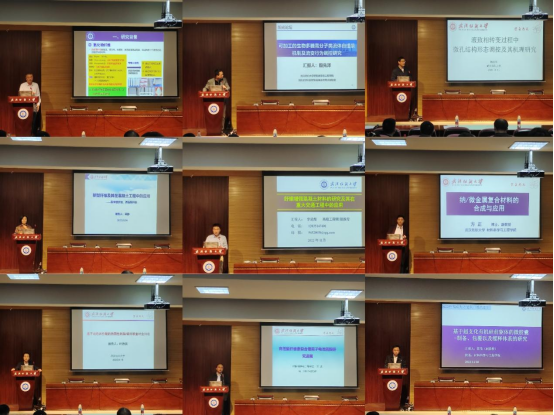 随后,其他八位学者:殷先泽——“可加工的生物多糖高分子类流体自组装机制及流变行为调控研究”、杨红军——“液致相转变过程中微孔结构形态调控及其机理研究”、许杰——“高性能纤维素基复合锂离子电池隔膜研究进展”、吴静——“新型纤维及其在混凝土工程中的应用”、李进辉——“纤维增强混凝土材料的研究及其在重大工程中的应用”、方正——“纳/微金属复合材料合成与应用”、叶德展——“基于动态共价键的热固性树脂/碳纤维复材降解回收”、陈鸷——“基于超支化有机硅前驱体的微胶囊制备、包覆以及缓释体系的研究”依次展示。在场的老师和研究生们在各位高端人才展示结束后就专业问题进行了广泛的交流探讨,现场学术交流氛围十分活跃。