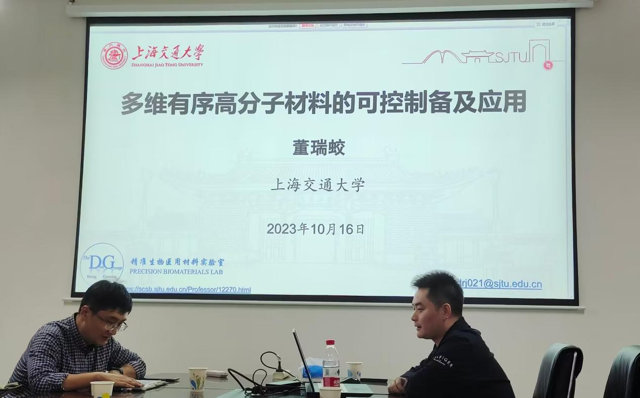 2002级高分子专业毕业优秀校友董瑞蛟特别研究员。报告的主题是“多维有序高分子材料的可控制备及应用”。