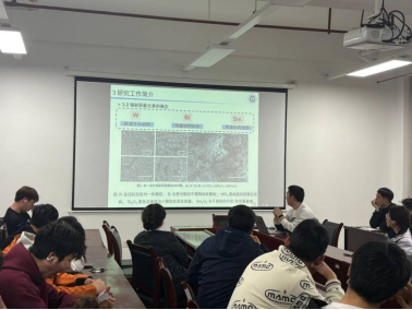 承办,黄静、何承恩两位老师担任指导评委。学院硕士研究生易泉、王鹏、胡博文三位同学围绕"功能材料创新设计与应用"主题,依次汇报了最新科研进展,集中展示了学院在新型烟草材料、辐射防护材料及柔性能源材料领域的前沿探索成果。