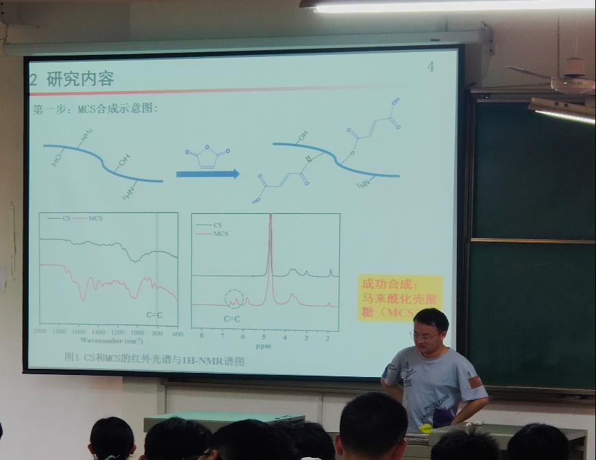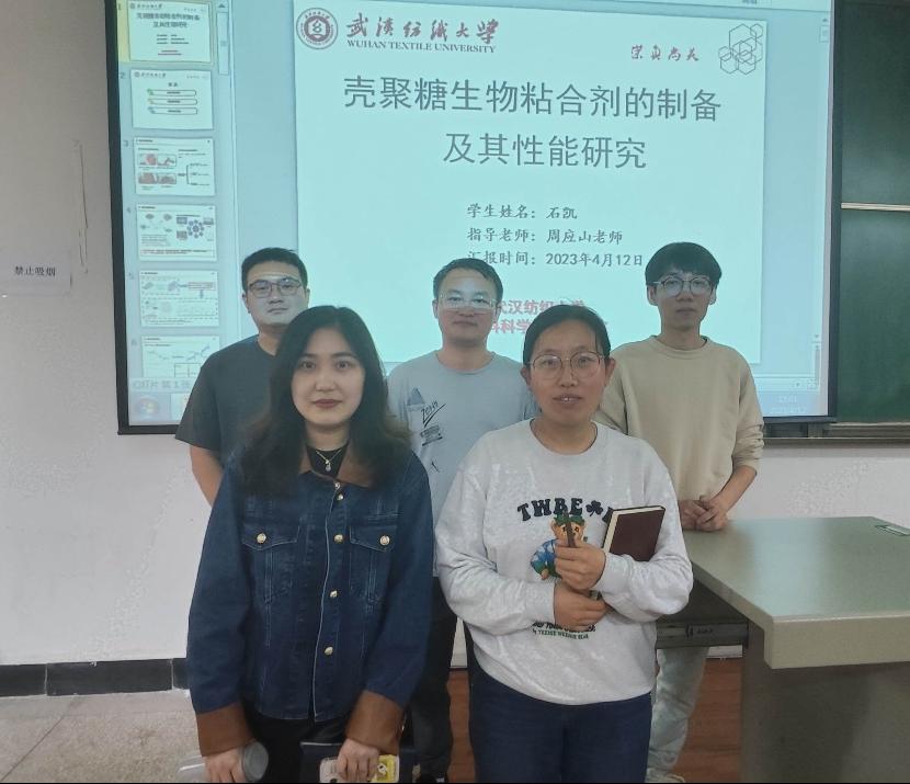 4月12日举行了研究生论坛。本次论坛由邀请李秀芳、朱雨璇两位老师参加,研究生张吉聪、石凯、徐浪为全体学生和老师以题为“基于偶氮苯衍生物的光致变色聚酯及纤维的制备及性能研究”、“壳聚糖生物粘合剂的制备及其性能研究”以及“液膜表面喷涂聚偏二醇溶液对聚偏二乙烯膜结构及防污性能的影响”的进行论坛报告。