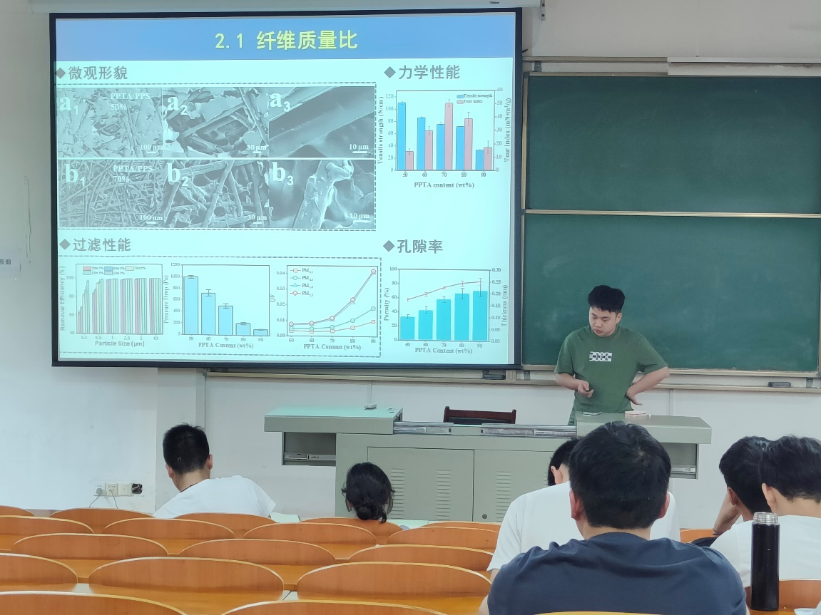 赵鹏以纤维增强泡沫夹芯结构的制备及其力学性能研究为题,通过湿法解离-干式热固接技术将对位芳纶短切纤维引入自制的PPS超细纤维中,构筑以PPTA为骨架,PPS超细纤维为粘接剂的PPTA/PPS复合纤维毡,且赋予其优异的热稳定性和化学稳定性。