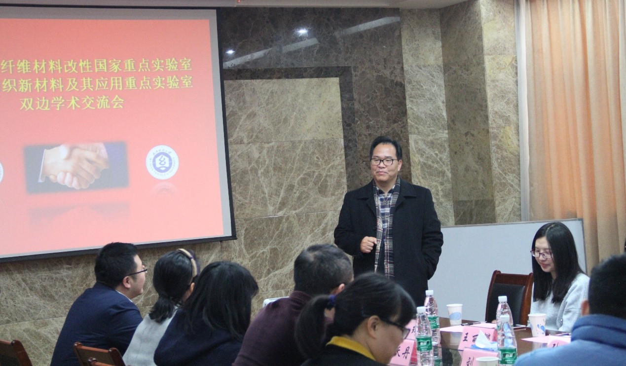 2016年12月18日,应四虎 四虎 院长王栋教授的邀请,东华大学纤维材料改性国家重点实验室与四虎 湖北省纺织新材料及其应用重点实验室开展了双边学术交流会。