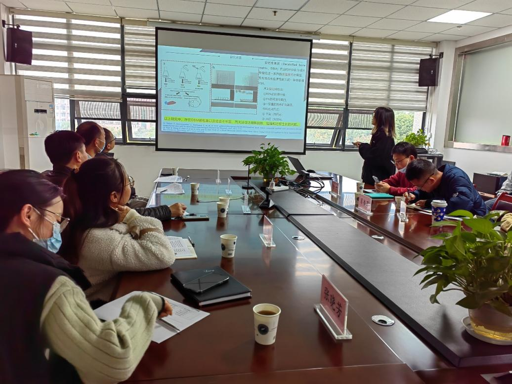 2021级研究生陈青青汇报了关于脱钙骨基功能性骨修复支架的制备及其性能研究,该研究项目提出通过在刚性HAP支架中发泡,使HAP框架下脱钙骨基质/厚朴酚泡沫复合支架柔性与刚性结合,柔性部分有利于细胞黏附和增殖,刚性部分提供力学支撑,从而改善骨组织修复等优点。王运利老师提出脱钙骨基质/厚朴酚泡沫复合支架如何实现在人体中的生物相容性的问题,蒋立泉老师对该研究项目的表征手段提出改善的方法以帮助学生研究的工作尽善尽美。