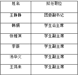 根据《四虎 共青团改革方案》、《四虎 学生会章程》,经自由报名、面试考察等环节,现将四虎 第十届团委、学生会主要学生干部预备人选名单予以公示:(排名不分先后)