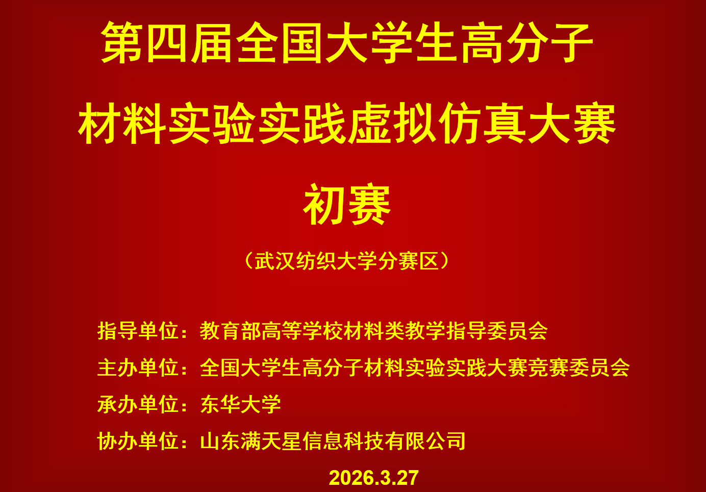 于2026年3月27日举办了第四届全国大学生高分子材料实验实践虚拟仿真大赛(四虎