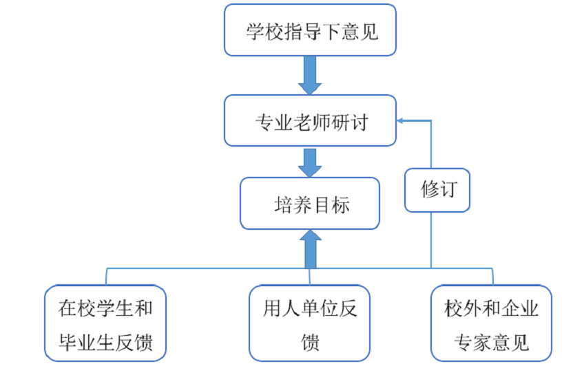 专业成立以专业负责人、课程负责人和2-3名企业/行业专家为主要成员的培养目标修订小组,负责培养目标修订工作。
