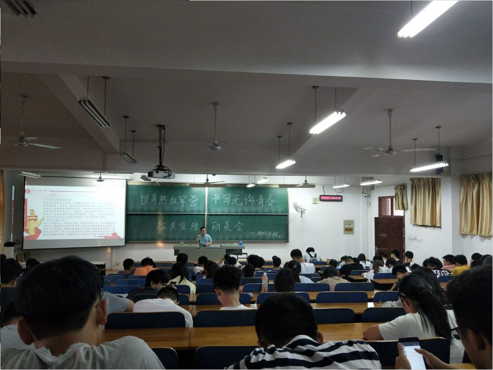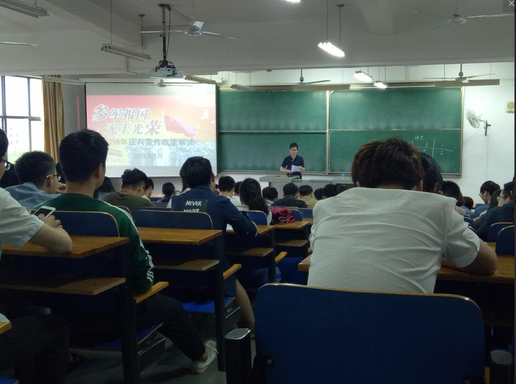 召开了2018年大学生征兵工作宣传动员大会。会议全程同步收看了教育部、中央军委国防动员部在京召开的全国大学生征兵网络视频会议。重温了习近平主席给南开大学新入伍大学生回信精神。
