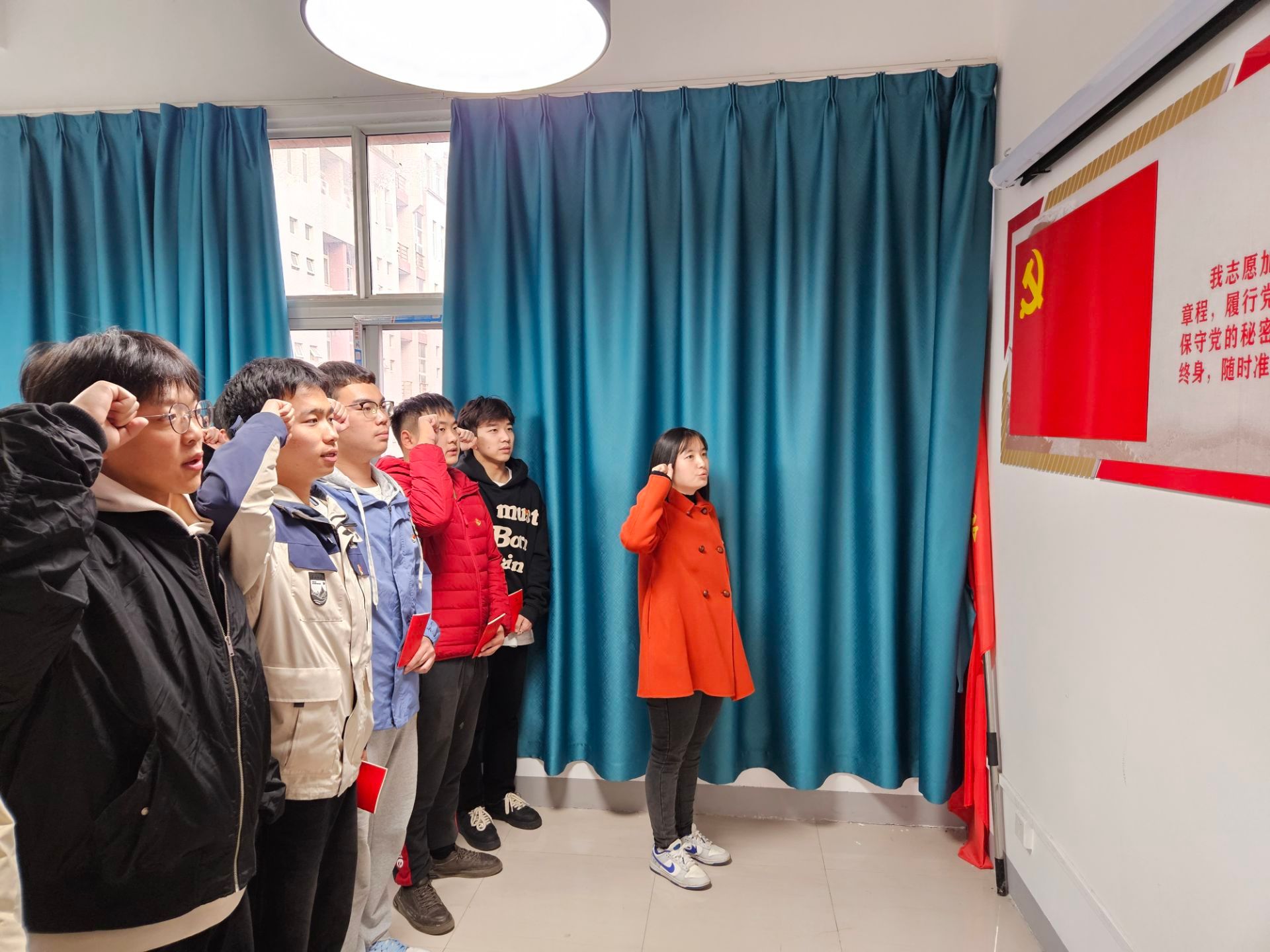 在“天生我材”学生成长服务站开展“励初心、宣誓言、担使命”2023年下半年新党员入党宣誓活动,全体本科生辅导员参加,活动由材化研究生党支部书记王鑫主持。
