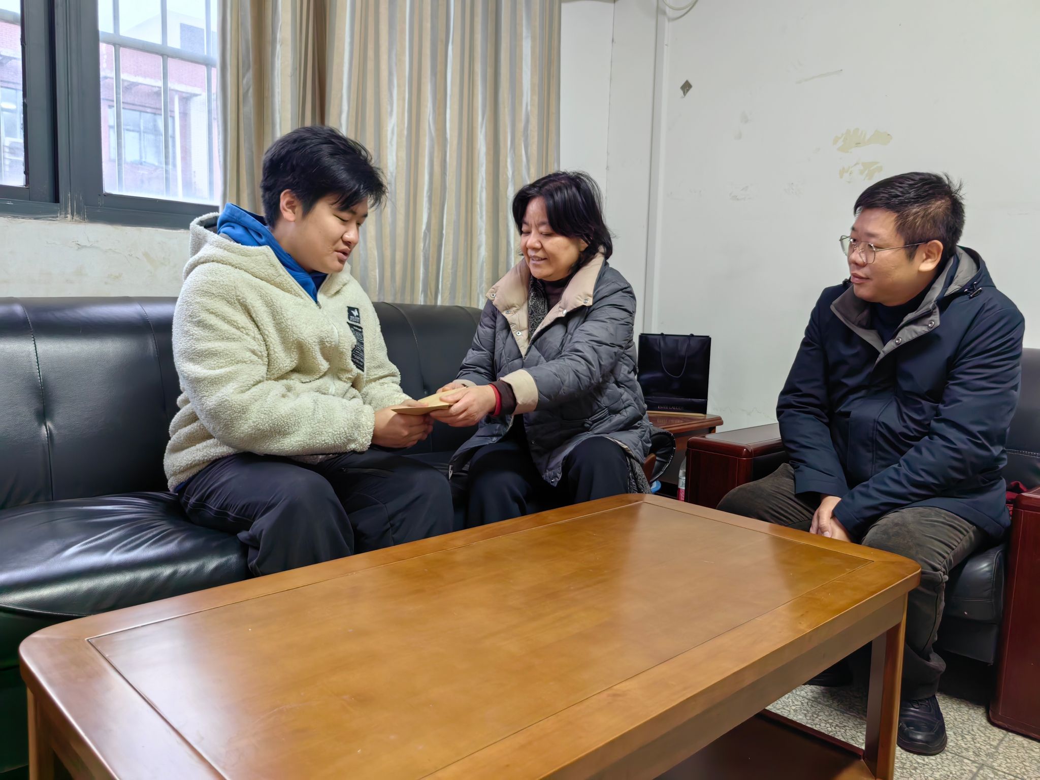 陈书记将慰问金送给吕鑫杰同志并与其进行了亲切交谈,深入了解了学生的学习、生活和家庭情况,鼓励他要坚定信念,勇敢面对困难,努力学习,为实现自己的人生目标而奋斗。同时他希望吕鑫杰同志要持续发挥好党员的先锋模范作用,为同学们树立榜样。吕鑫杰同志表示非常感谢四虎
