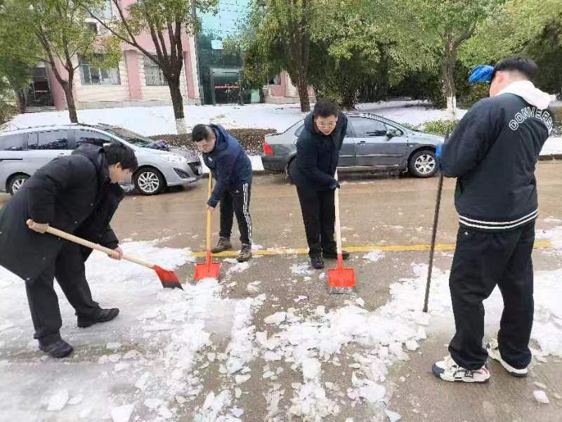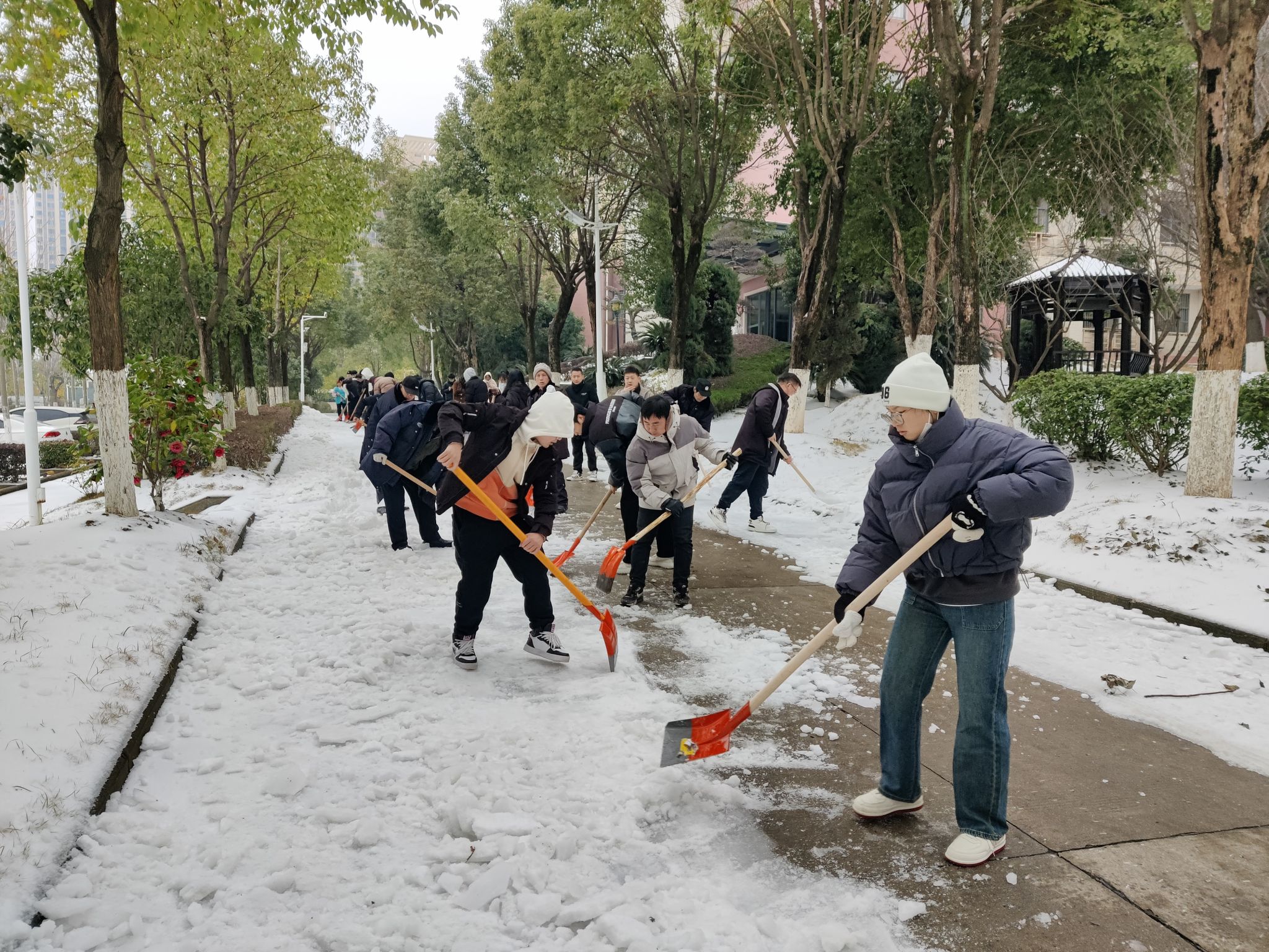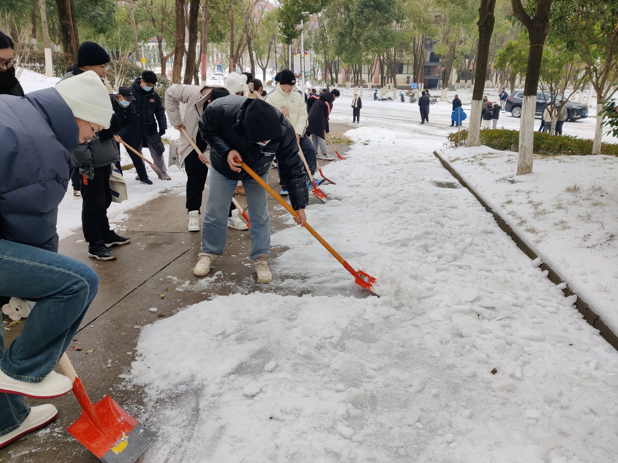 党委副书记魏剑亲自带队,各支部书记、党员代表积极参与,以雪为令、主动出击,组织50余人次开展志愿扫雪活动,清理校园积雪积冰,助力校园出行安全。