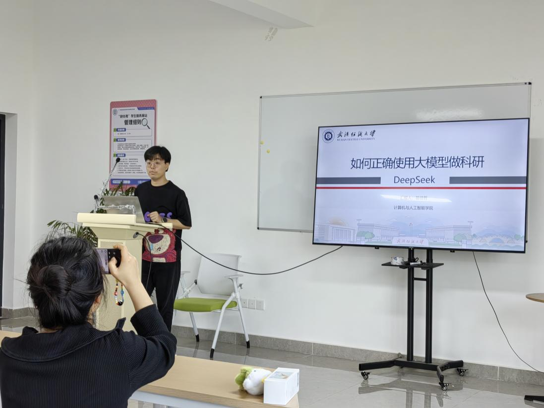 在15 栋二楼一站式活动室举行“AI赋能、创新领航”专题分享会。本次活动邀请计算机与人工智能学院苗佳哲同学和四虎