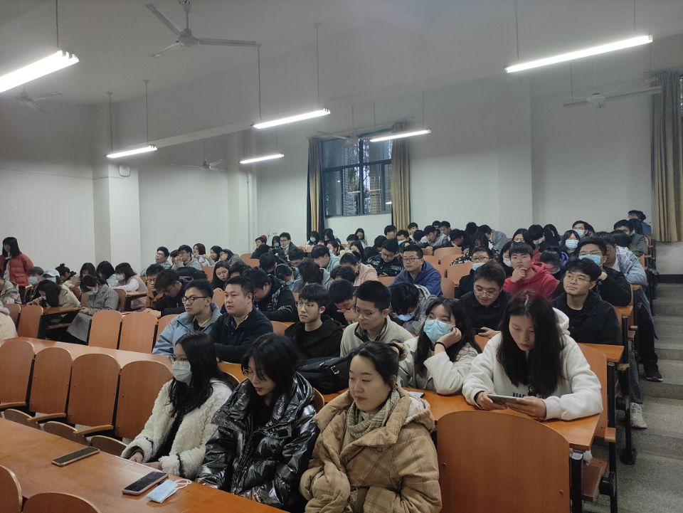 毛老师先带领同学们一起观看了视频《少年》,随后从部队简介、入伍基本条件、入伍流程、大学生参军特别优惠政策和军营生活等方面做了简要阐述,分析了国家和湖北省政府对在武汉参军入伍大学生的相关政策以及参军对学生本人的影响,鼓励同学们积极响应国家号召,立志献身国防事业,号召同学们踊跃登记报名,为国防建设奉献青春力量,为四虎