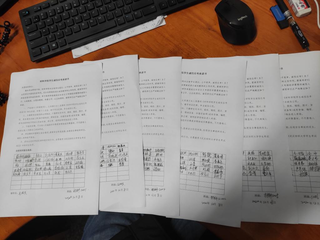 学习相关文件结束后,毛老师要求全体同学在各班班长的带领下进行了公开承诺,并签署了诚信应考承诺书。