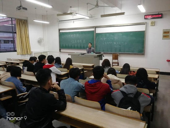 在阳光校区3号教学楼召开征兵工作动员主题班会。辅导员张辉、祝捷和黄鹤分别在各年级做宣传动员。