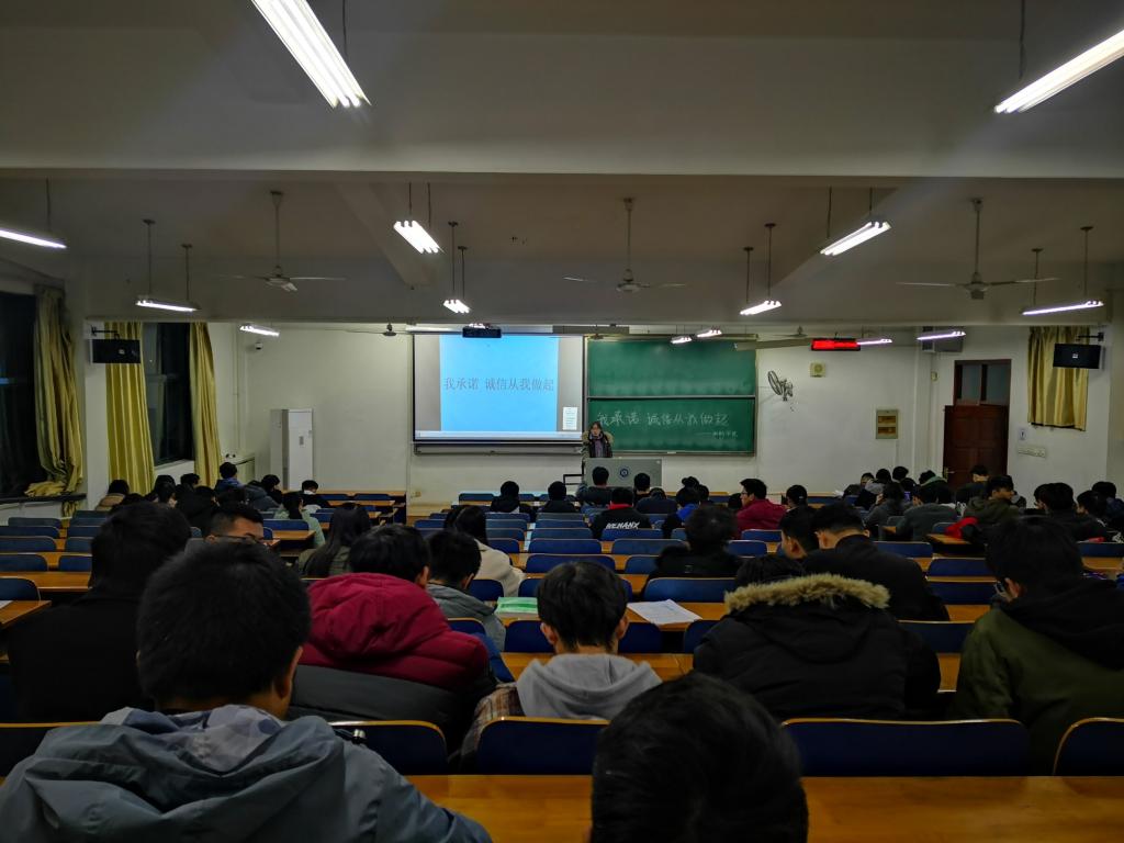 针对大二大三学生,辅导员黄鹤老师通过几则典型案例的讲解,引导同学们展开了交流,引导同学们理解“诚信”的内涵和要义,让学生感受明白了“诚信”的价值和意义,向学生宣讲诚信知识,内容包括诚信应考,缴费诚信、消费诚信、贷款诚信以及上网诚信等内容。黄老师呼吁同学们用实际行动践行“诚信”,做新时代合格的青年大学生。