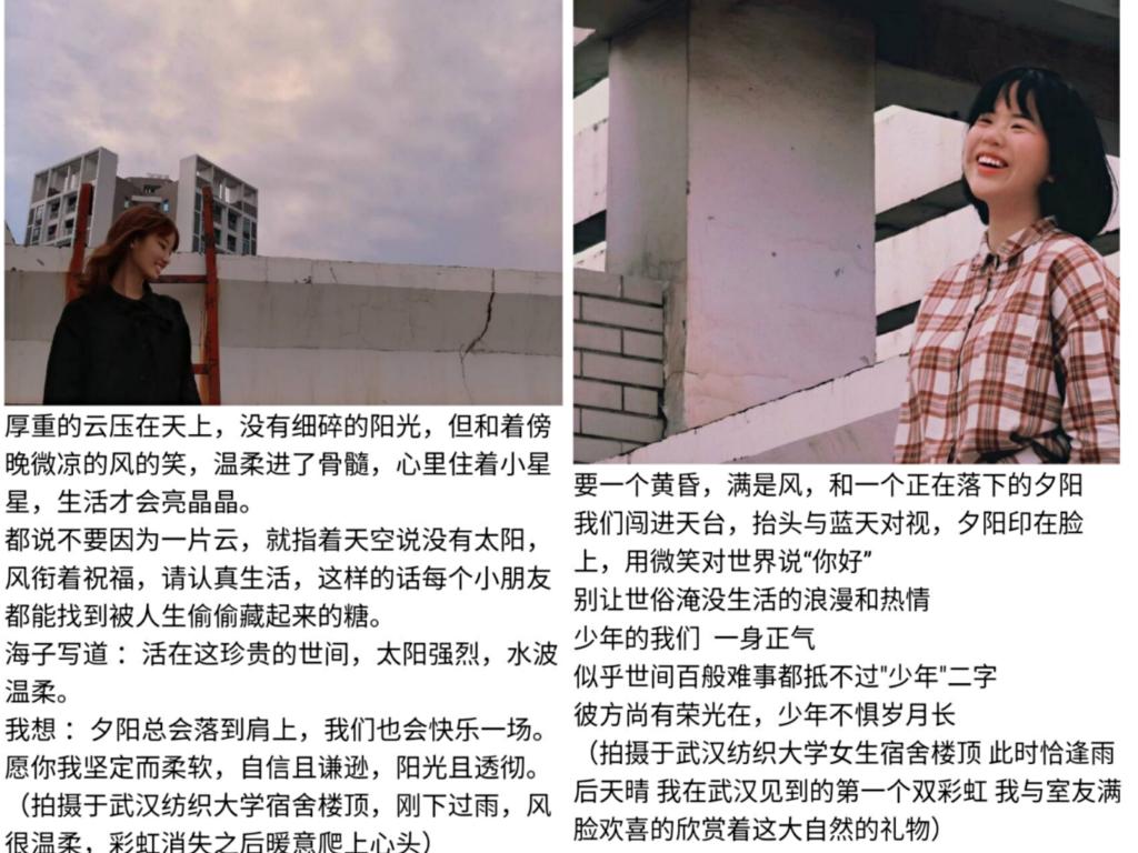 经过一段时间的征集,同学们积极报名活动,我们收集到了许多让人如沐春风的照片。其中包括食堂阿姨结束工作后露出一双带笑的眼睛;朋友在一起时的喜悦;遇见美好时的欣喜……