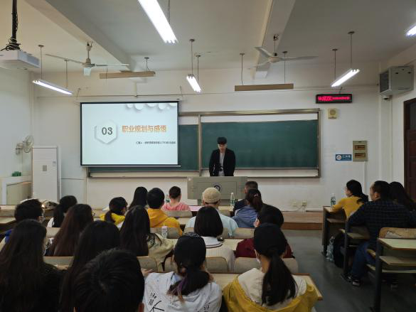 在阳光校区3号楼411教室组织开展了大学生职业生涯规划主题班会,校党委常委、副校长罗锦银出席并以“让青春之花在祖国最需要的地方绽放”为题给学生上了一堂精彩的思政课。