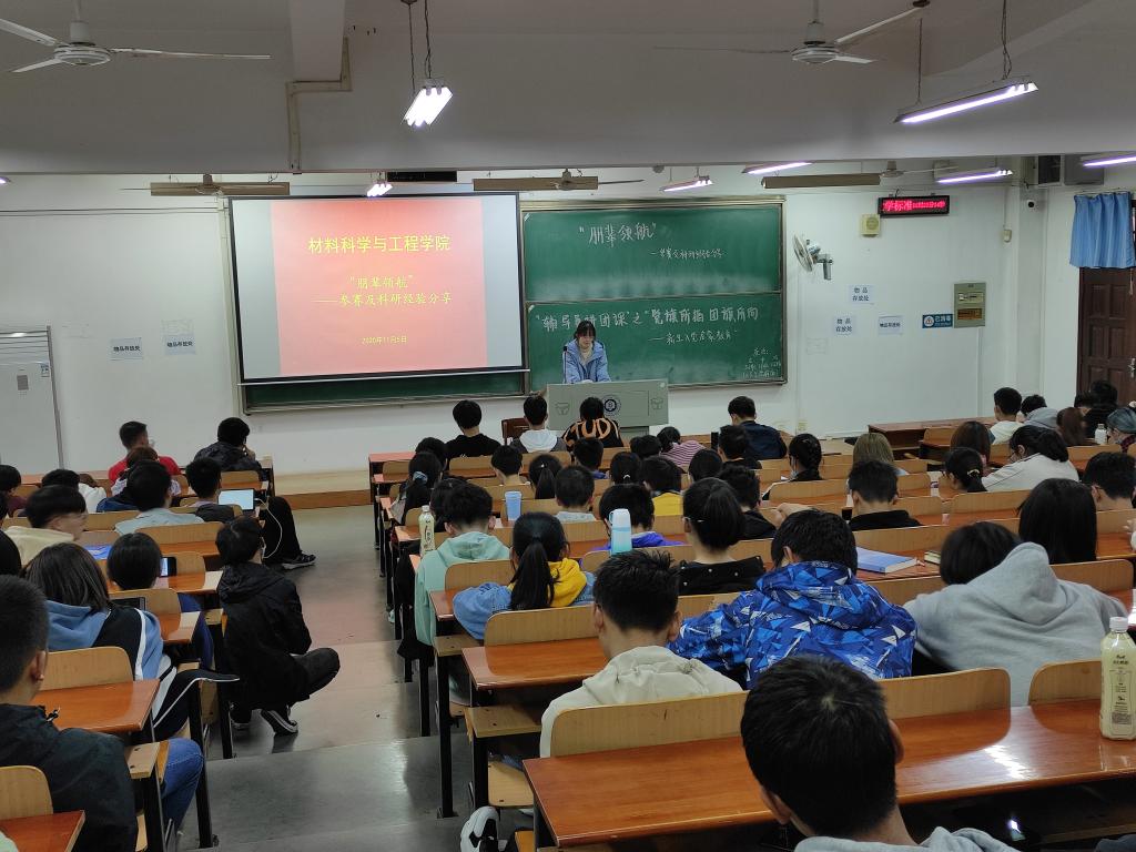 邓林冰向2020级新生分享了自己大一入学后的心路历程,从内敛甚至有点自卑到阳光自信,从十分迷茫到目标明确,从当时的想转专业到在材料领域小有成绩,甚至在疫情期间仍然没有放松学习,为了写综述自己查阅了上百篇文献,今年还发表了一篇论文。邓林冰用生动的讲解结合鲜活的案例,剖析了自己的成长经历,也为学弟学妹们摆脱迷茫提供了借鉴。邓林冰建议学弟学妹们要早进实验室、多进实验室、多参加比赛,不仅可以在科研中充实自己,还可以在比赛中提高自己、锻炼自己,为以后的成功打下坚实的基础。邓林冰向学弟学妹推荐了徐坚教授的《全球新材料技术最新进展与展望》讲座,并表示这个讲座是她打开科研大门的“钥匙”,在当时很受启发。