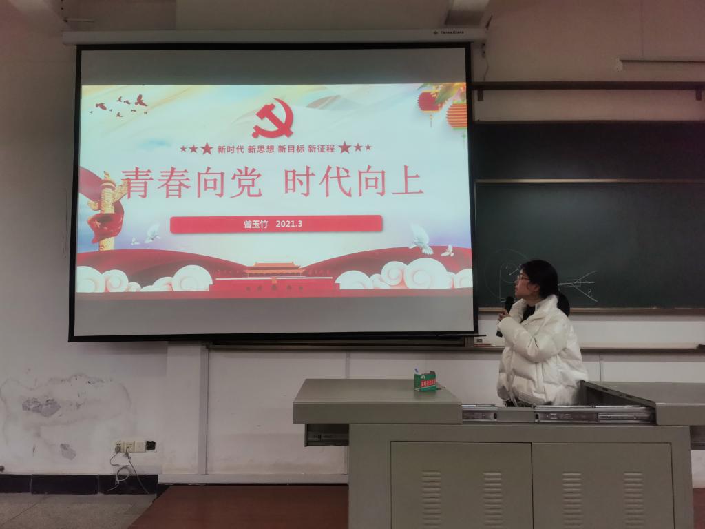 组织开展了“青春向党、时代向上”主题教育活动,活动由曾玉竹老师主持,全体大三学生参加。