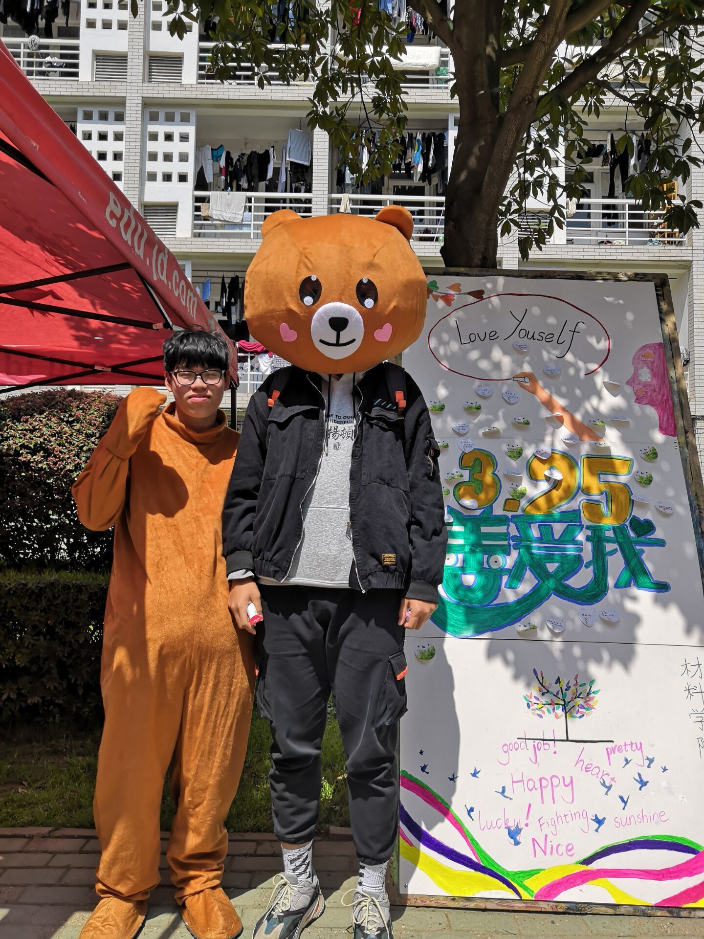 活动中,学院提前策划了一些有趣的小游戏,让同学们在游戏的热身下更好地缓解压力,从而更好地达到向在校学生宣传心理小知识的目的和效果。并在一食堂侧门进行摆点,向过往的同学老师们发放心理知识宣传单,向他们介绍“3.25善爱我”的理念,并邀请他们进行小游戏或者写下今日心情、对“325善爱我”的看法等等,贴在宣传画板上,并为同学们奖励了提前备好的小零食小礼品。来到摆点处的同学们除了可以学习心理知识、获得小礼品外,还可以和我们穿着布偶熊的工作人员合影。