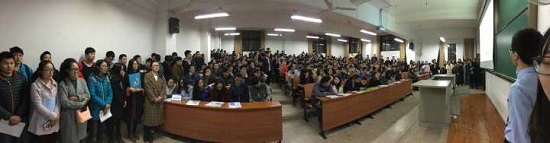 毕业生的加入。同学在听完宣讲后踊跃投放简历,现场进行了笔试。