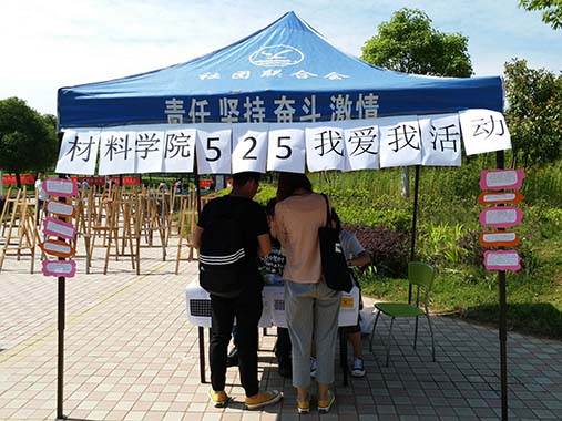 心理工作站在二食堂门口举办了"我爱我”暨阳光心灵展活动。