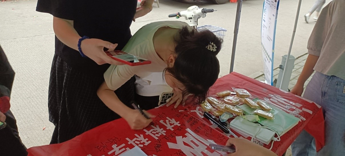 2022年诚信教育主题活动的子活动在阳光校区一食堂北门拉开帷幕。本次活动分为“感恩助学 励志成才”诚信立身主题签名和助学贷款诚信教育知识竞赛两个活动,线上线下同时开展。