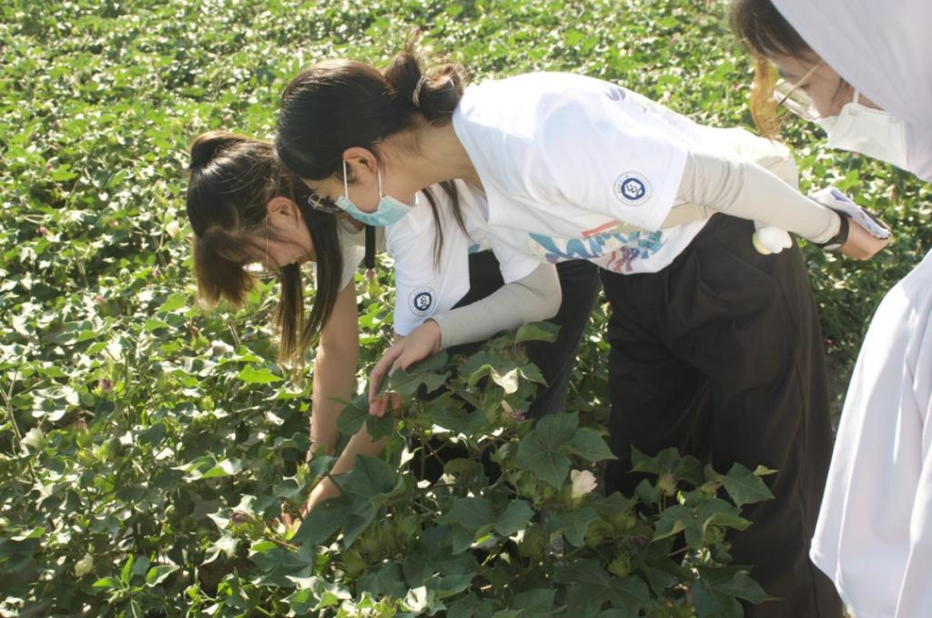(实践团到棉花生产基地查看新疆棉生长情况)