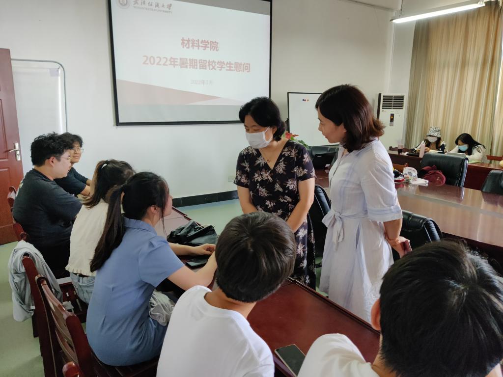 党委书记陈桂枝,副书记侯畅,辅导员胡晓、毛成兴、曾玉竹到学院考研自习室看望暑期留校学生,并代表学院送上了慰问品和祝福。