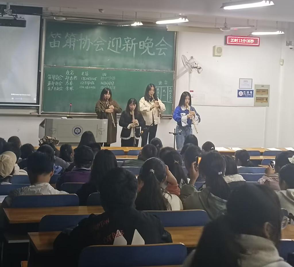 首先,主持人陈宇薇就协会的基本情况以及举办的特色活动进行简单介绍;随后,笛部、箫部、葫芦丝副会一一介绍了竹笛、洞箫、葫芦丝、巴乌的魅力,并进行了展示表演;最后,会长郭程靖讲述了自己进入的协会的感受,鼓励同学们积极参与社团活动,在笛箫大家庭里找到志同道合的朋友,并真正学习到民乐相关本领。