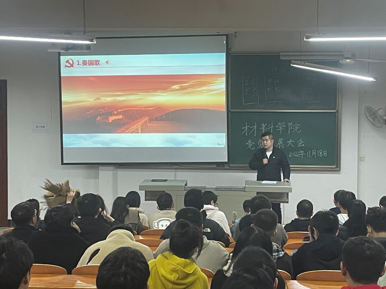 首先由研究生党支部副书记朱国彬宣读大会大会流程,本次转发展大会部分同志因个人原因只能线上进行,党支部其余同志在现场参会。