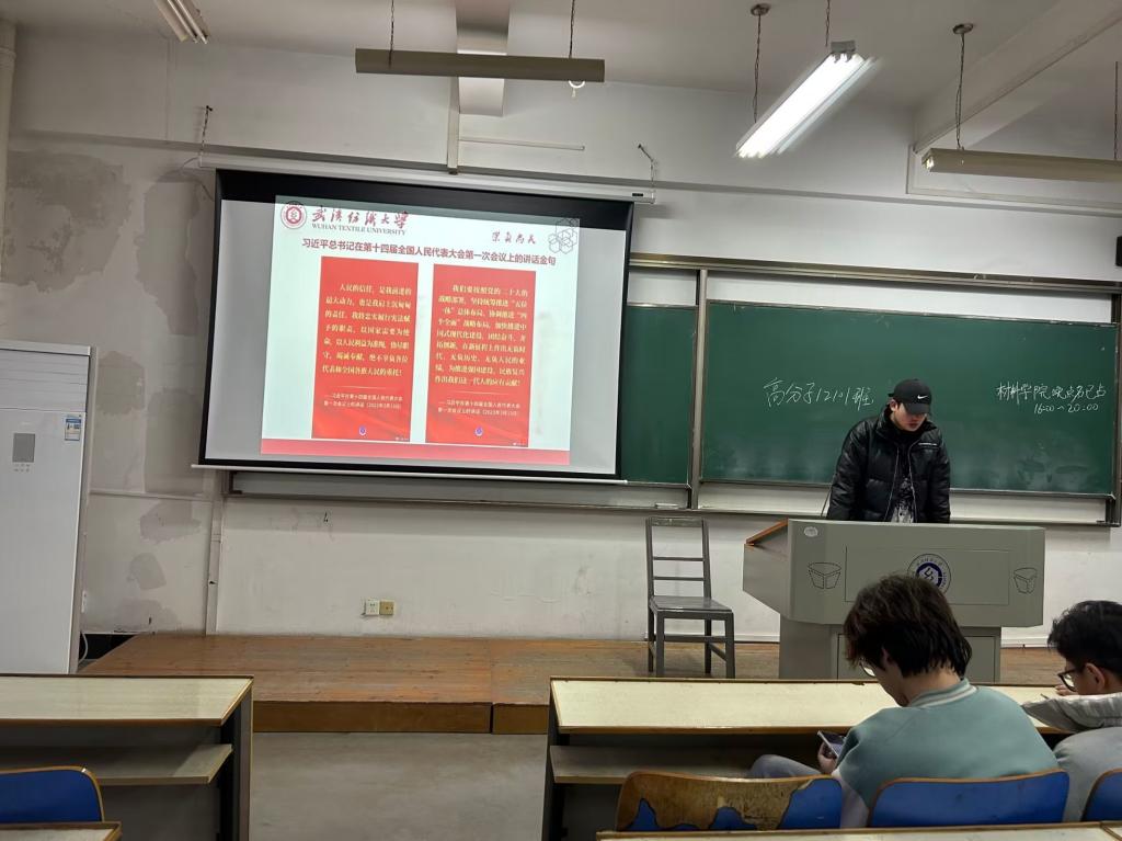 主题班会上,各班深入学习了习近平总书记在第十四届全国人民代表大会第一次会议上的讲话精神。“人民的信任,是我前进的最大动力,也是我肩上沉甸甸的责任。”习近平总书记的讲话体现了他“我将无我 不负人民”的精神和对党和国家的忠诚,是我们每一位青年大学生的榜样。青年大学生也要以“只争朝夕”的精神状态,不断为强国建设和民族复兴伟业添砖加瓦、增光添彩。
