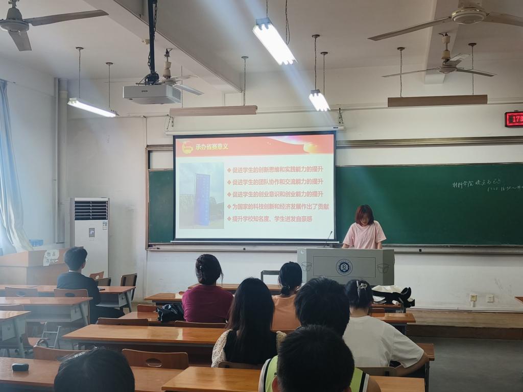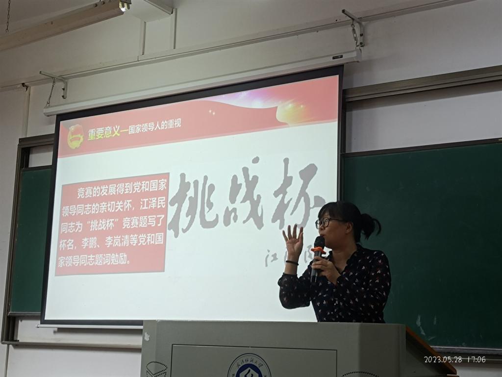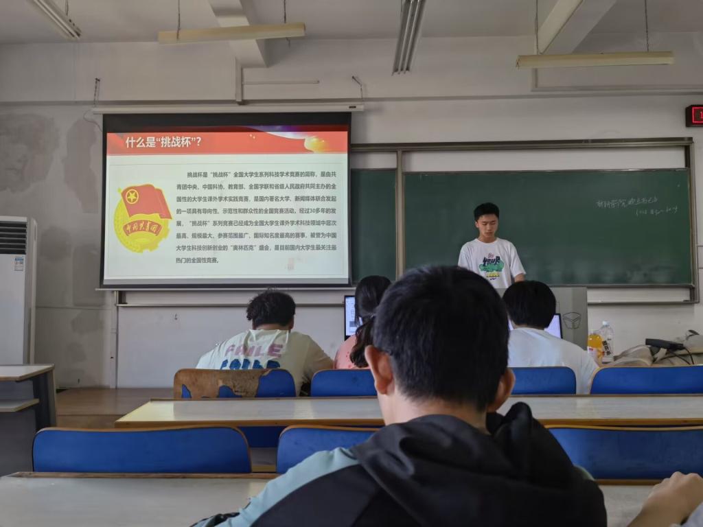 成功举办了2023年湖北省第十四届“挑战杯·中国银行”大学生课外学术科技作品竞赛,掀起了课外科技活动的热潮。晚点名班会介绍了“挑战杯”的发展历程、竞赛方式,并展示了四虎