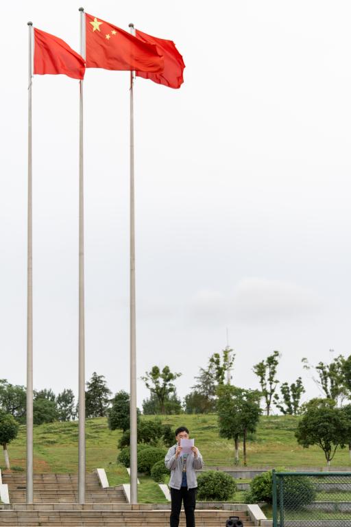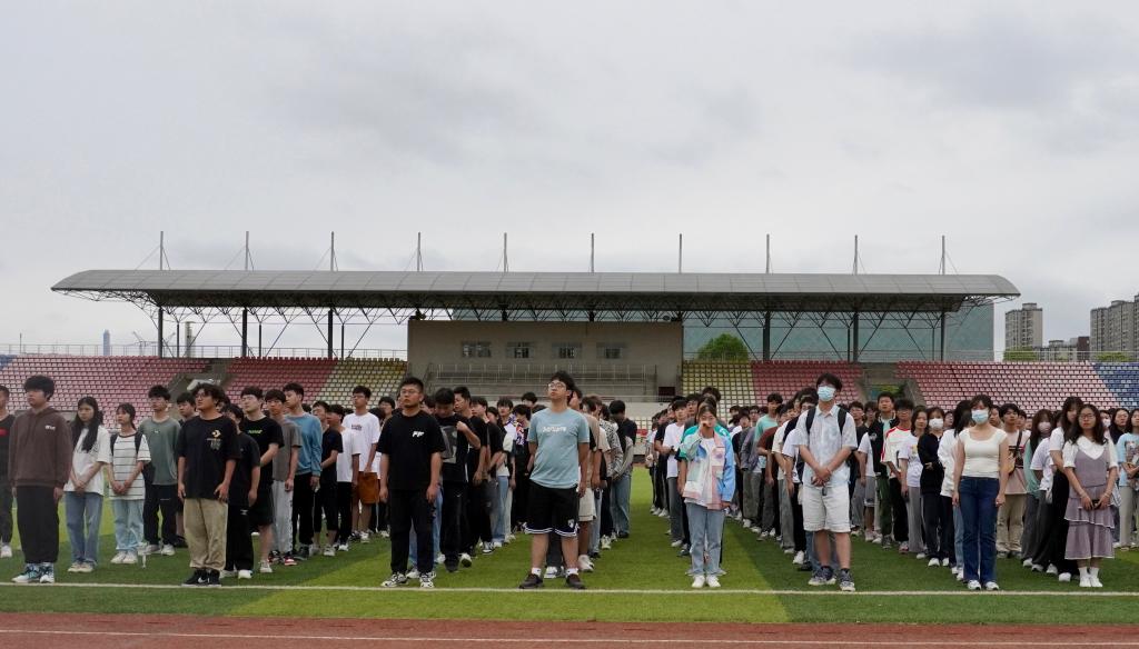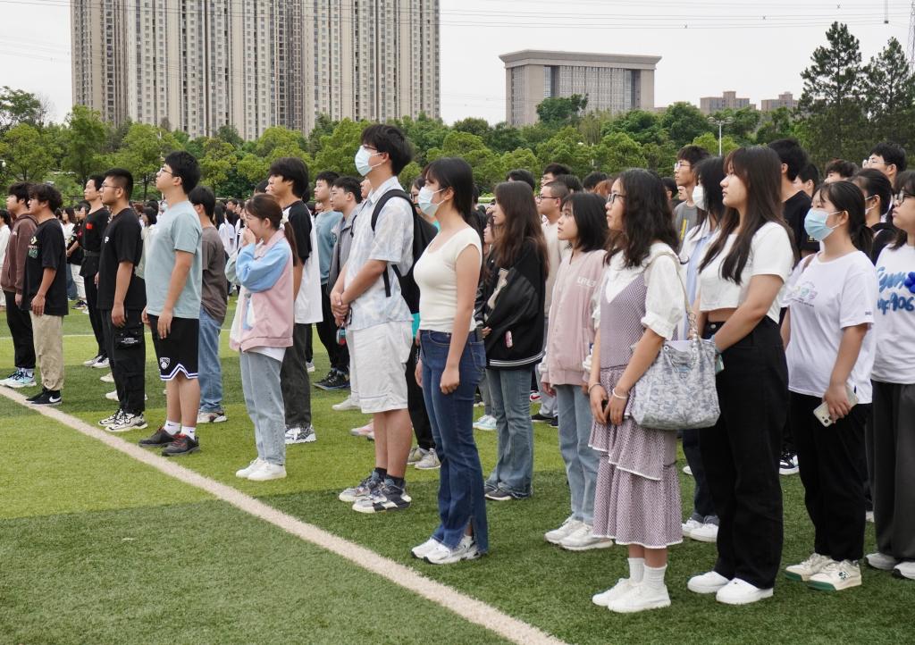应校国旗护卫队的邀请,辅导员老师带来学生在田径场参加升旗仪式。