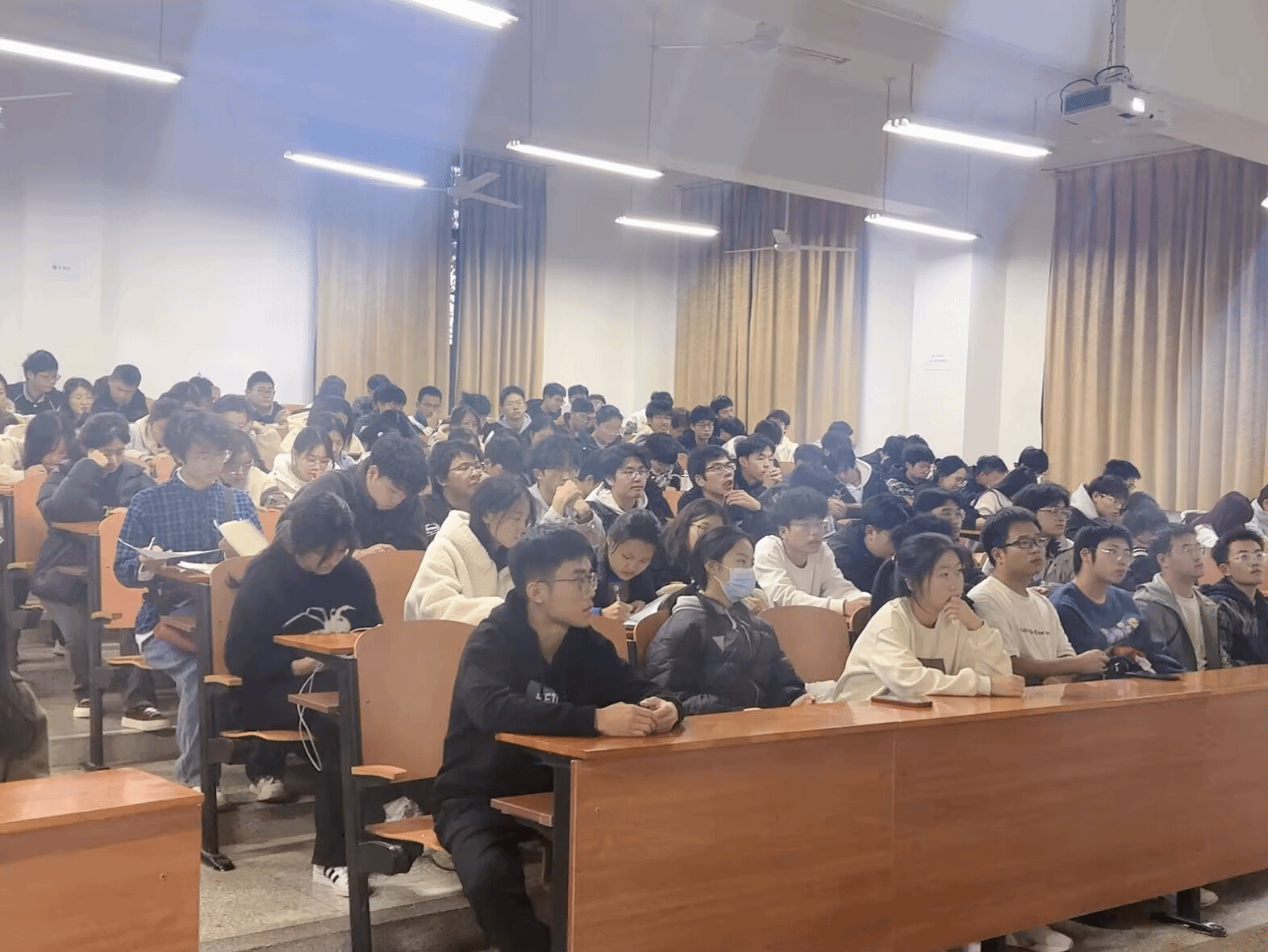 在贵州大学举办的第十八届“挑战杯”全国大学生课外学术科技作品竞赛中所取得的喜人成果,并号召大家积极参加科学实验,不断提升科学本领,大家也纷纷表示了向前辈学习争创佳绩的决心。