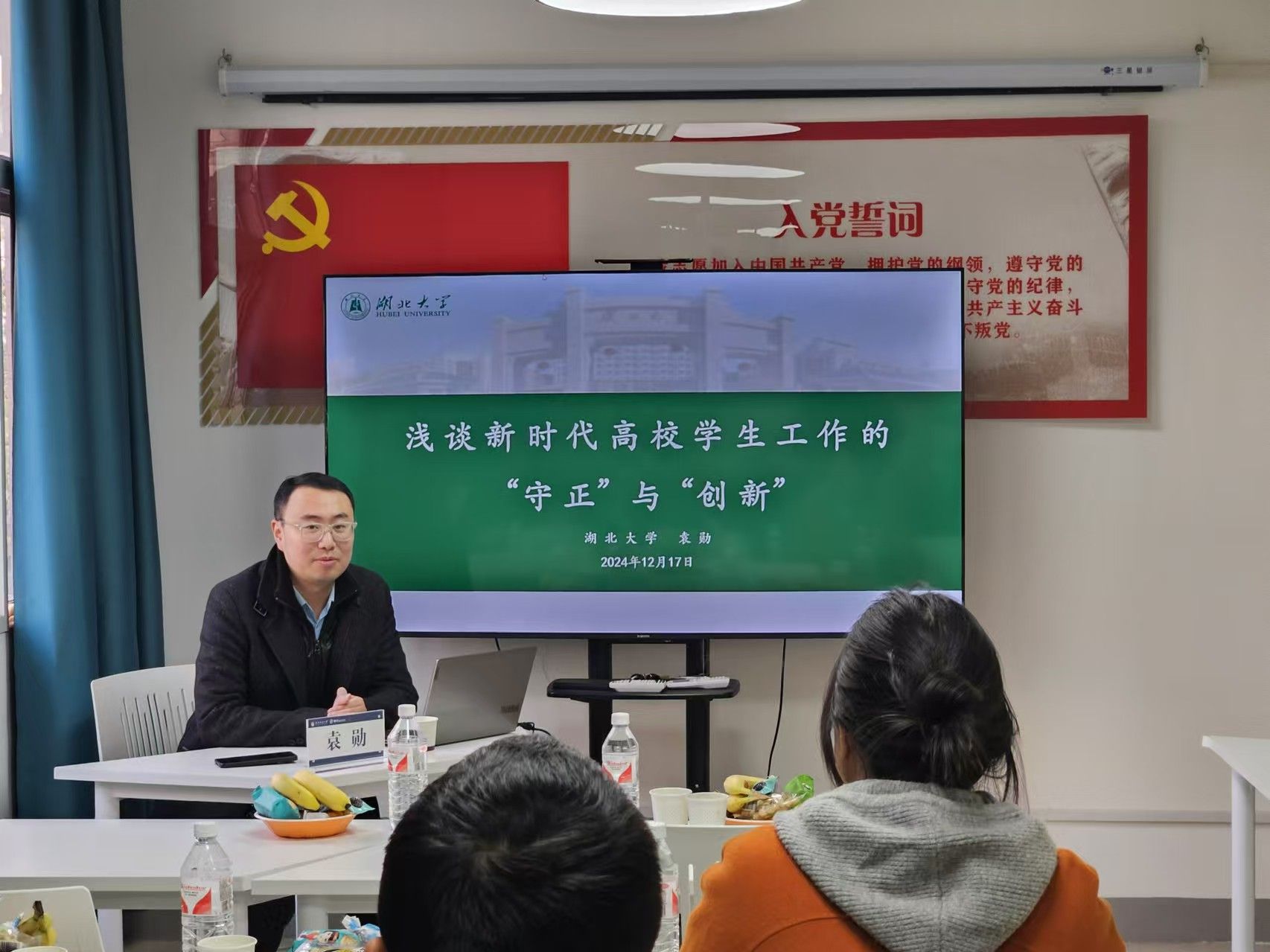 袁勋以《浅谈新时代高校学生工作的“守正”与“创新”》为题作报告。他聚焦新时代高校学生工作的新情况和新挑战,强调学生工作既要守住思想政治教育这一“正道”,又要寻求新的突破和发展;辅导员既要牢牢把握九大工作职责扎实开展各项工作,又要结合自身学科背景和四虎