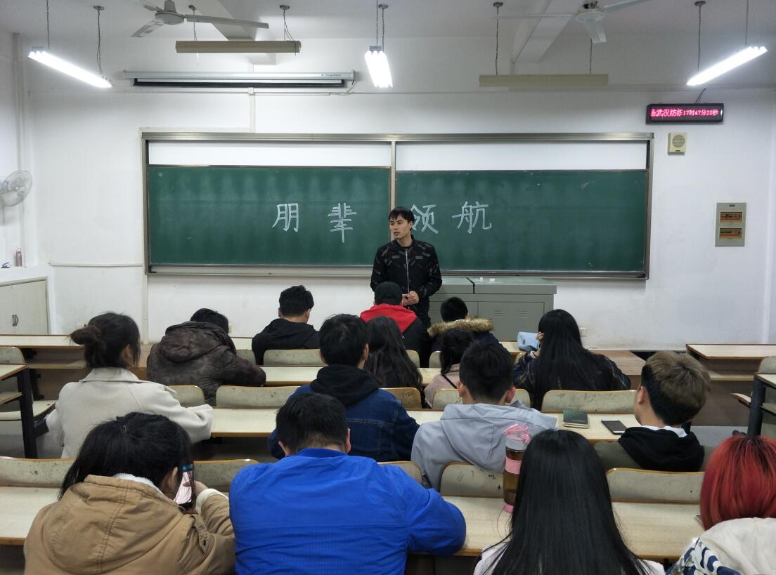 在03-410举办了“朋辈领航,薪火相传”朋辈领航报告会,本次报告会的主讲人为学院学生会主席刘伟强同学,低年级学生干部门参加了本次会议。