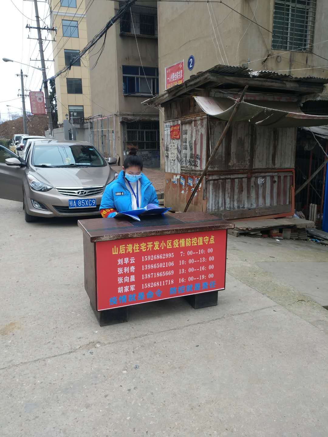 疫情就是命令,防控就是责任。2月18日,汉川市委市政府正式下发了基层党员就近下沉到社区的号召,要求党员干部到社区领取工作任务,参与到社区的防控工作中去。我和已经有快二十年党龄的父亲一起到汉川市山后湾社区报道,各自领取工作任务,成为了一名“在册”的防控工作人员。组织的召唤,让我有了更坚定的斗志和战斗的热情,也有了更明确的工作方向。汉川市山后湾社区领导将我分配至山后湾住宅开发小区建立值守点,和三名来自其他单位的党员,全天负责这个居住二百余户四百多人的小区值守工作。刮风下雨我们顶着凛冽的寒风坚守在这里,烈日当头我们巡查小区寸步不离,劝阻居民不随意外出、不扎堆聚集,帮助小区居民购物、购药。挨家挨户摸排小区居民居家、返乡、出处情况,每日敲门开户不漏一人的测量三百余人的体温状况。一把体温枪,一枚口罩楼上楼下的奔忙,让我忘记了害怕。小区居民大部分是年老、外迁人员,防控意识相对淡薄,劝阻出入和聚集聊天更是一大工作难题,耐心劝阻和晓之以理,让我们都练就了一张“婆婆”嘴。