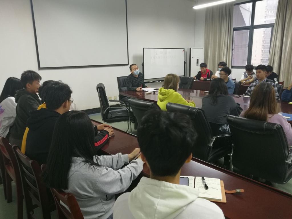 辅导员毛成兴在8F-506给大一班委上团课,团课主题为“疫情防控”和“班风学风建设”。20级所有班委听取了本次团课。